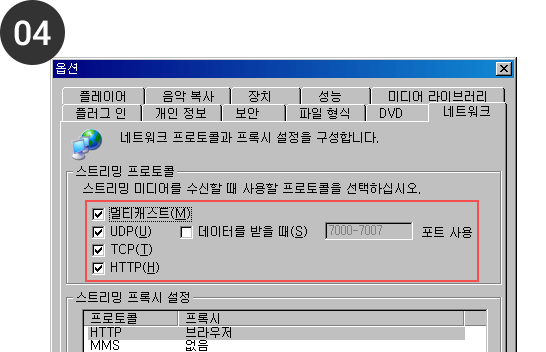 4.¿É¼ÇâÀÇ ³×Æ®¿öÅ© ÅÇ¿¡¼­ ½ºÆ®¸®¹Ö ÇÁ·ÎÅäÄÝ Ç׸ñÀ» ¾Æ·¡ ±×¸²°ú °°ÀÌ Ã¼Å©ÇÏ¿© Áֽðí "È®ÀÎ"À» Ŭ¸¯Çϼ¼¿ä.